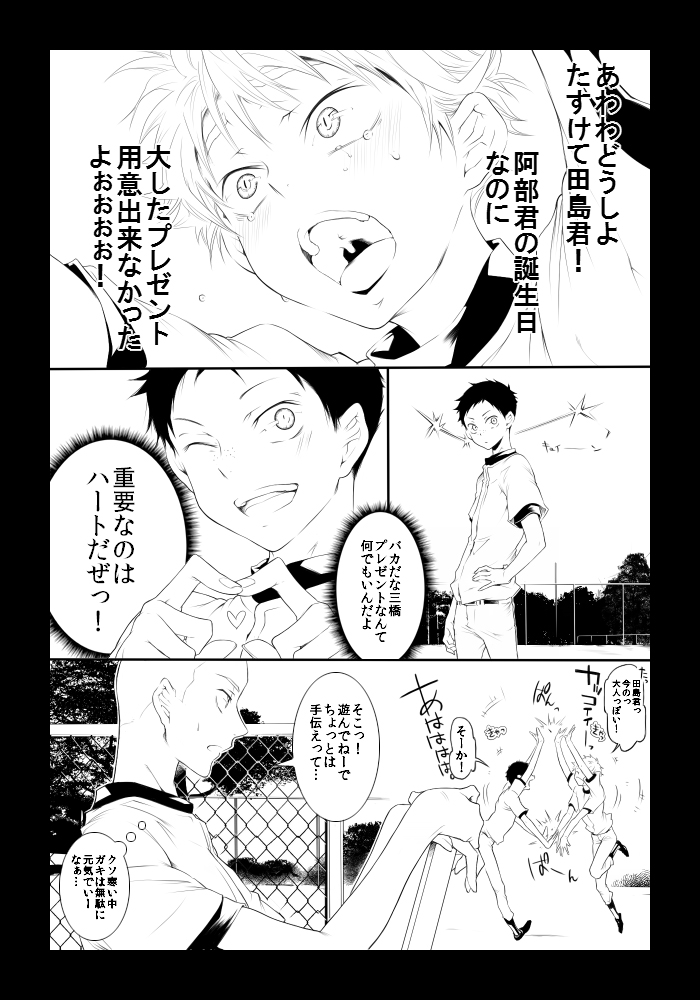 あとしょっぱなから三橋と阿部くんがいちゃついてましたよね?あとメット被ってるあべくんやっぱ